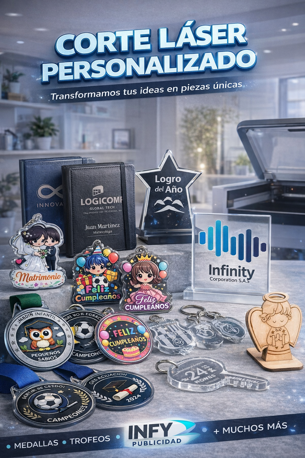 Explora una selección de proyectos reales que hemos desarrollado en INFY PUBLICIDAD: desde personalizados en DTF y UV DTF hasta gran formato, material P.O.P., carnets y piezas creativas a la medida. Este portafolio está pensado para inspirarte y mostrarte la calidad, el detalle y la creatividad que ponemos en cada trabajo.
